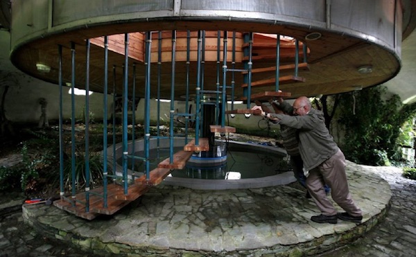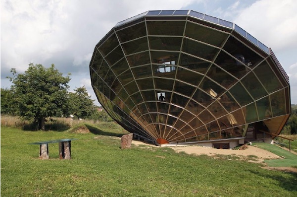 This house that looks like a UFO resting on its side is called Heliodrome and is located in the countryside of Cosswiller, near Strasbourg, France. Built in 2011 it is actually a solar bioclimatic building, a huge three-dimensional solar disk fixed to the ground with a particular angle with respect to the movement of the sun that allows you to have shade in summer keeping the internal temperature cool, while in autumn, winter and spring, with the lowering of the position of the Sun, the sun’s rays enter through the large windows, heating the internal environment.