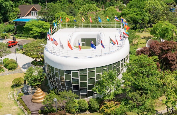 Haewoojaeen, which in Korean means “the place or sanctuary where one can solve their concerns” is a structure built in 2007 by architect Go Giung, with a water shape. It is located in the city of Suweon, about 40 kilometers south of Seoul, in South Korea. The intention of Giung was to celebrate the foundation of the World Toilet Association, a non-profit organization that strives to improve the sanitary conditions of toilets in the world, hence the idea of the oval shape of the building and of the opening at the top of the building.